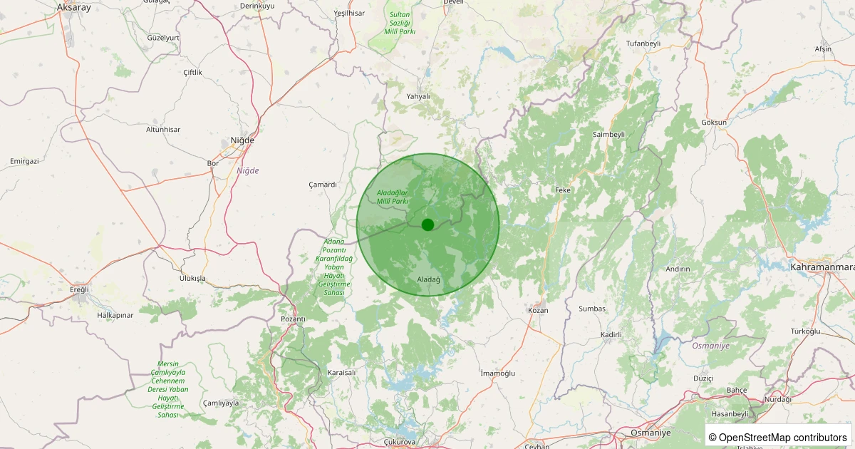 Son 7 gün içinde Yahyalı - Büyük Çakır noktasından 100 km yarıçap içerisinde meydana gelen diğer depremler: