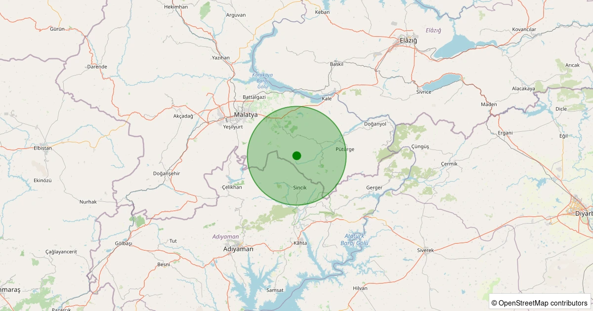 Son 7 gün içinde Pütürge - Arıtoprak Köyü noktasından 100 km yarıçap içerisinde meydana gelen diğer depremler: