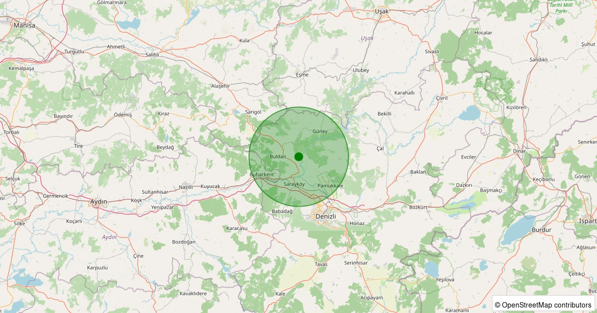 Son 7 gün içinde Buldan - Yenicekent noktasından 100 km yarıçap içerisinde meydana gelen diğer depremler: