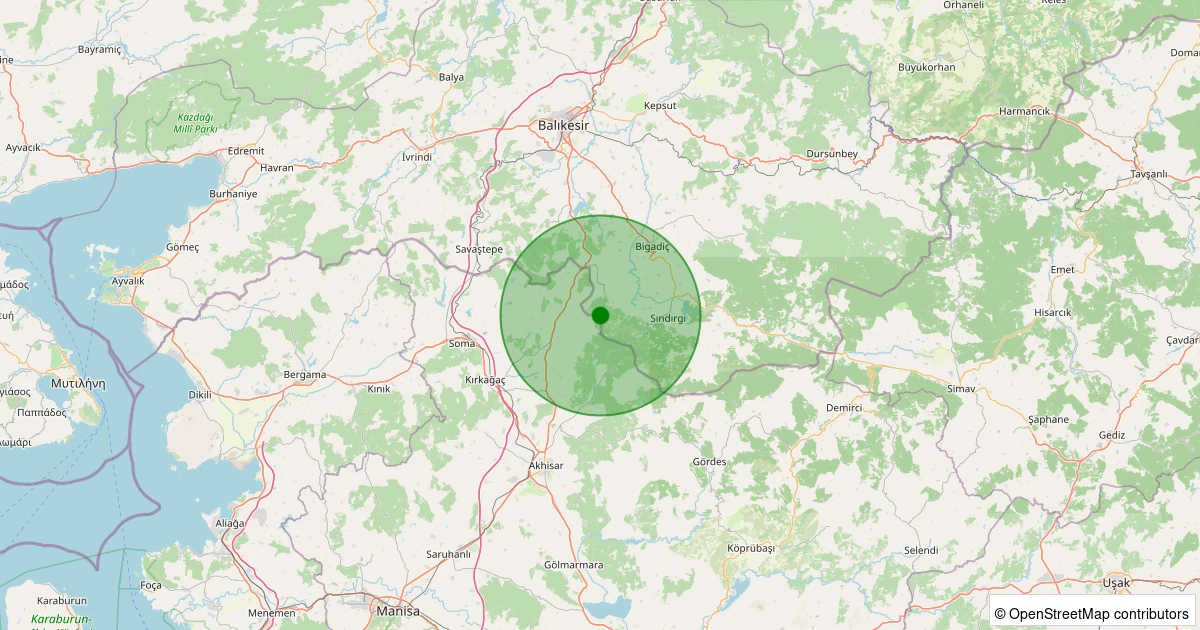Son 7 gün içinde Sındırgı - Eğridere noktasından 100 km yarıçap içerisinde meydana gelen diğer depremler: