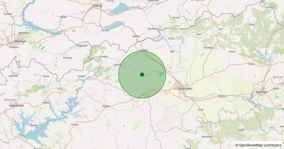 Son 7 gün içinde Ergani - Akçakale noktasından 100 km yarıçap içerisinde meydana gelen diğer depremler: