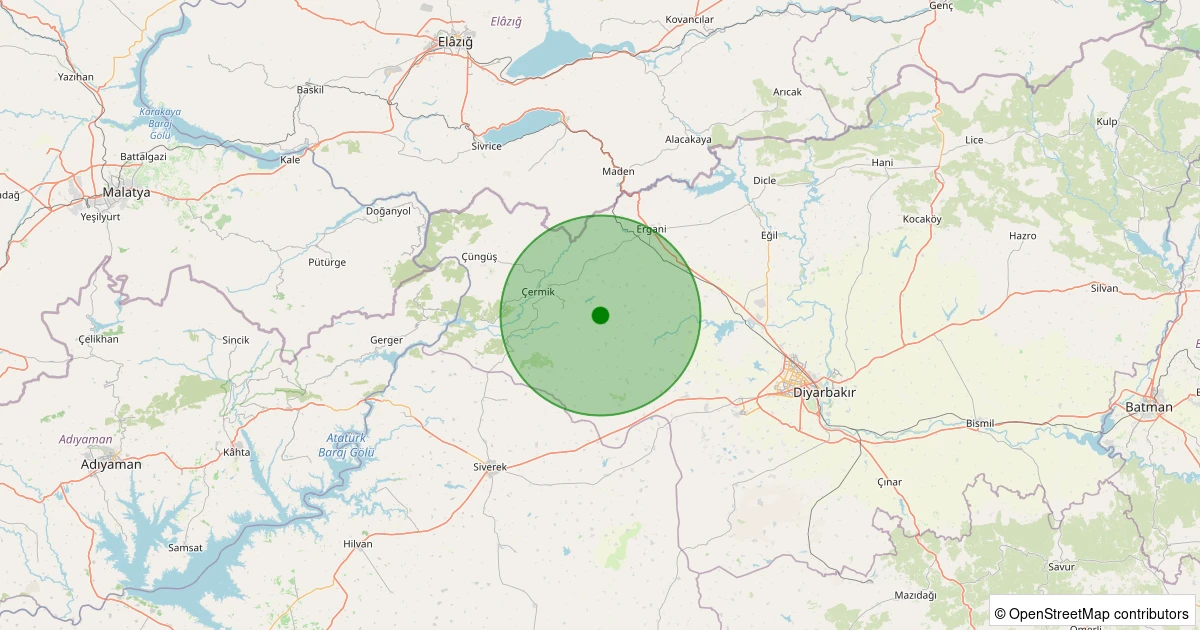 Son 7 gün içinde Çermik - Akkoyunlu Köyü noktasından 100 km yarıçap içerisinde meydana gelen diğer depremler:
