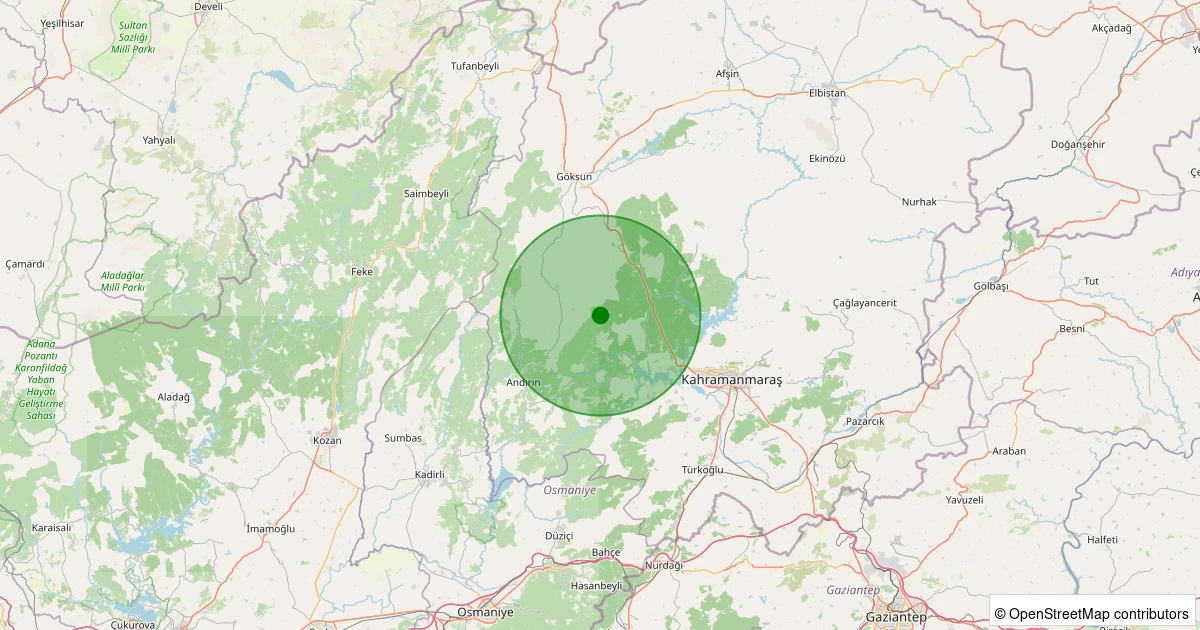 Son 7 gün içinde Onikişubat - Köşürge noktasından 100 km yarıçap içerisinde meydana gelen diğer depremler: