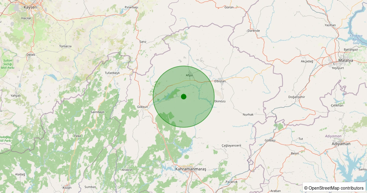 Son 7 gün içinde Göksun - Ericek noktasından 100 km yarıçap içerisinde meydana gelen diğer depremler: