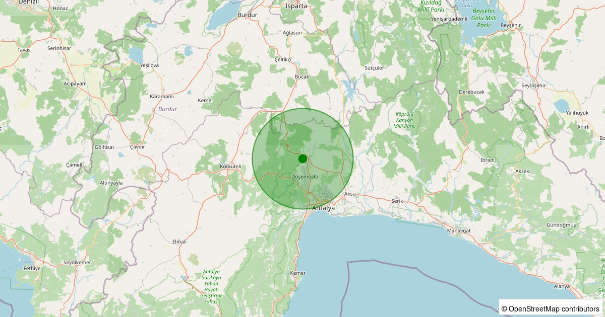 Son bir hafta içerisinde Antalya şehri Döşemealtı - Bıyıklı noktasından 100 km yarıçap içerisinde toplamda 11 deprem kaydedilmiştir. Bu depremlerden en büyüğü 2.1 büyüklüğünde ve en sığ odaklısı 4.20 kilometre derinlikte gerçekleşmiştir.