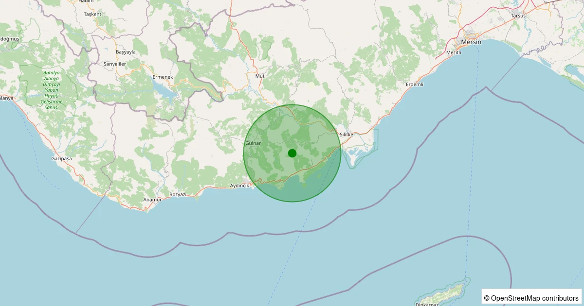 Son 7 gün içinde Silifke noktasından 100 km yarıçap içerisinde meydana gelen diğer depremler: