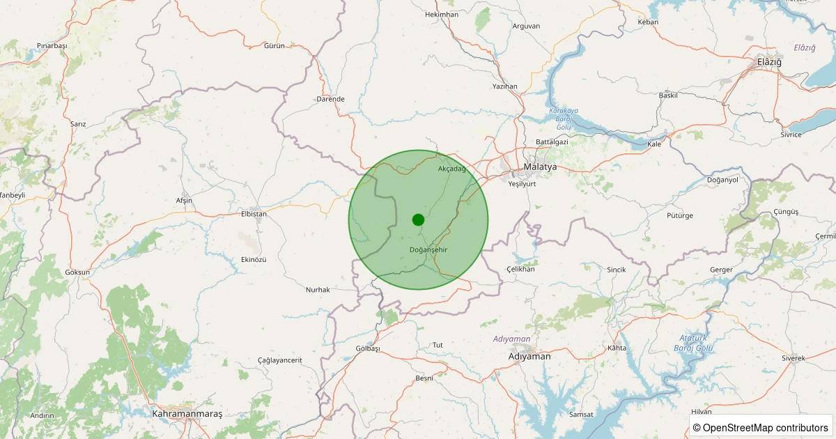 Son 7 gün içinde Doğanşehir - Polat noktasından 100 km yarıçap içerisinde meydana gelen diğer depremler: