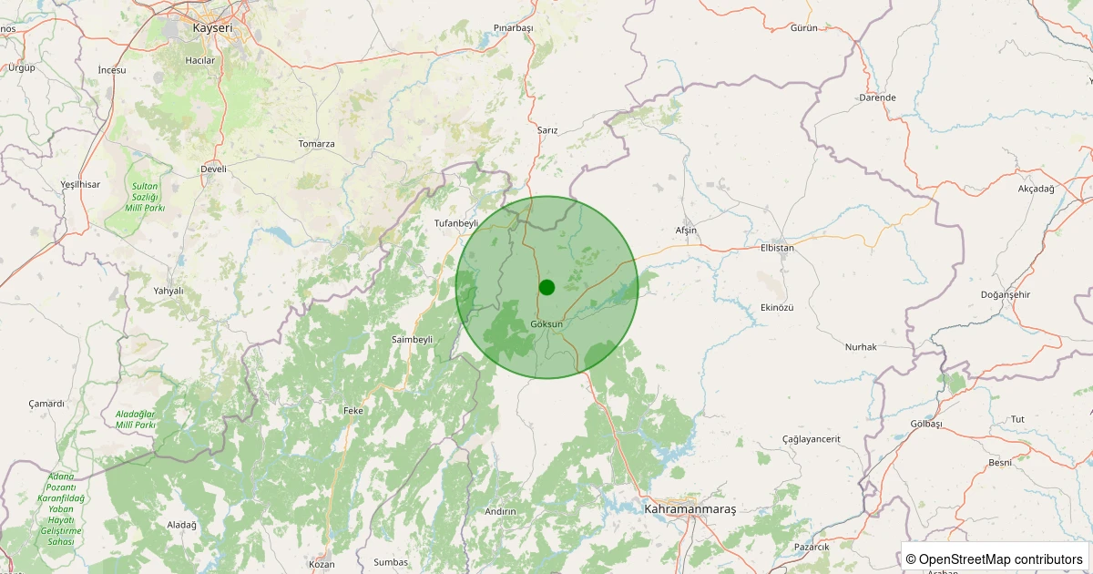 Son 7 gün içinde Göksun noktasından 100 km yarıçap içerisinde meydana gelen diğer depremler: