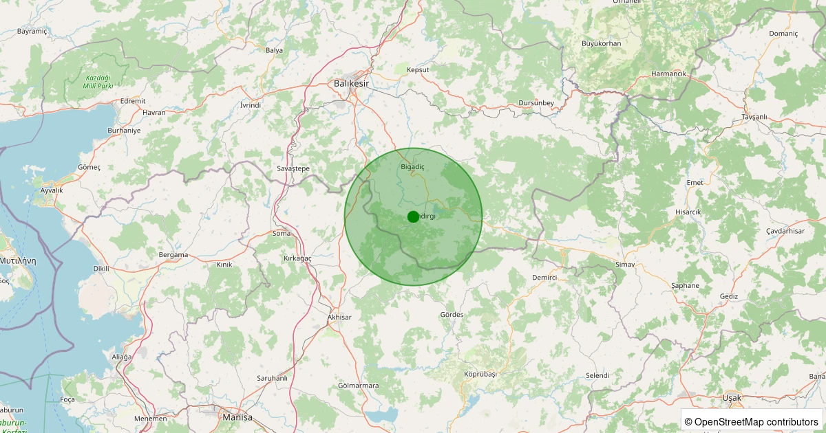 Son 7 gün içinde Sındırgı - Mandıra noktasından 100 km yarıçap içerisinde meydana gelen diğer depremler: