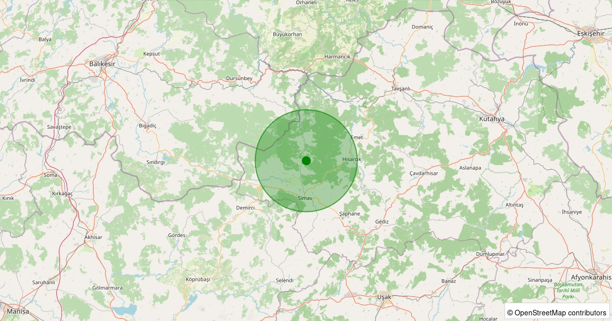 Son 7 gün içinde Simav - Yemişli Köyü noktasından 100 km yarıçap içerisinde meydana gelen diğer depremler: