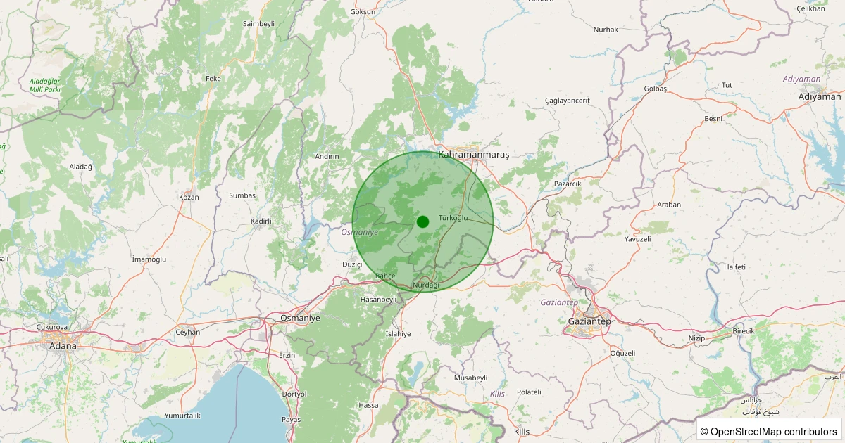 Son 7 gün içinde Türkoğlu - Yolderesi noktasından 100 km yarıçap içerisinde meydana gelen diğer depremler: