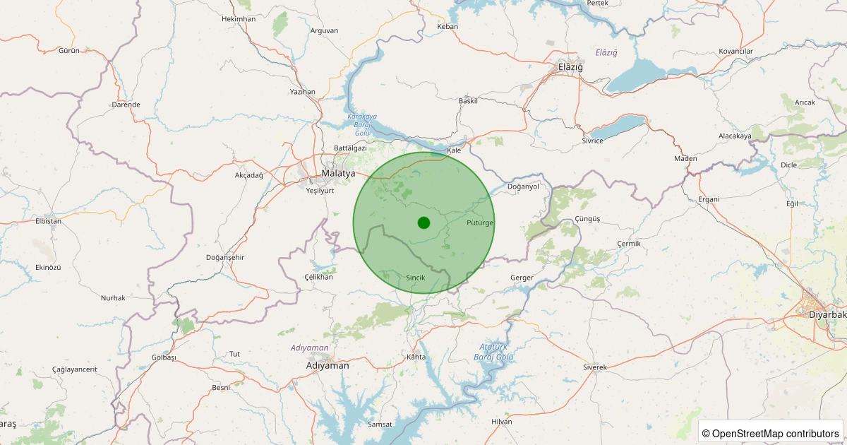 Son 7 gün içinde Pütürge - Tekederesi Köyü noktasından 100 km yarıçap içerisinde meydana gelen diğer depremler: