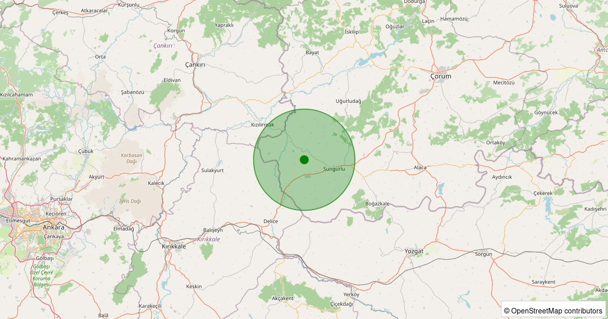 Son 7 gün içinde Sungurlu - Turgutlu Köyü noktasından 100 km yarıçap içerisinde meydana gelen diğer depremler: