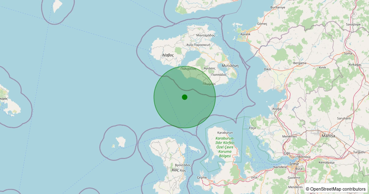 Son 7 gün içinde MIDILLI noktasından 100 km yarıçap içerisinde meydana gelen diğer depremler: