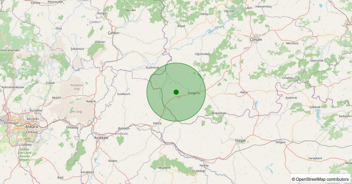 Son 7 gün içinde Sungurlu - Tirkeş Köyü noktasından 100 km yarıçap içerisinde meydana gelen diğer depremler: