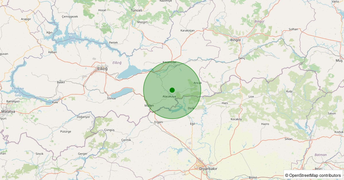 Son 7 gün içinde Alacakaya - Çakmakkaya Köyü noktasından 100 km yarıçap içerisinde meydana gelen diğer depremler: