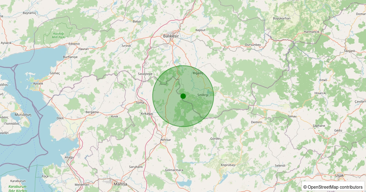 Son 7 gün içinde Sındırgı - Eğridere noktasından 100 km yarıçap içerisinde meydana gelen diğer depremler: