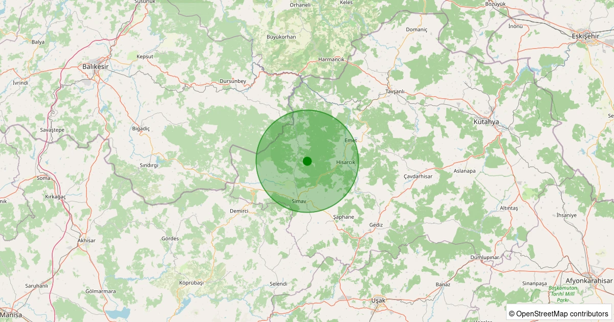 Son bir hafta içerisinde Kütahya şehri Simav - Yeşildere Köyü noktasından 100 km yarıçap içerisinde toplamda 532 deprem kaydedilmiştir. Bu depremlerden en büyüğü 3.1 büyüklüğünde ve en sığ odaklısı 0.00 kilometre derinlikte gerçekleşmiştir.
