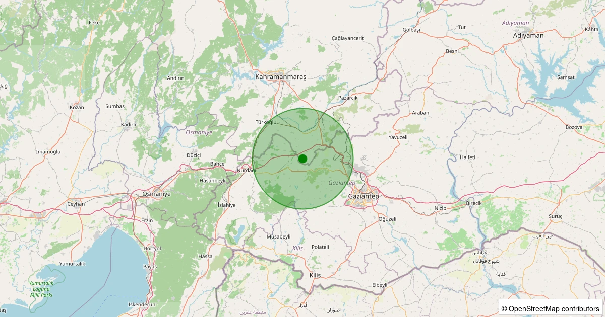 Son 7 gün içinde Pazarcık noktasından 100 km yarıçap içerisinde meydana gelen diğer depremler: