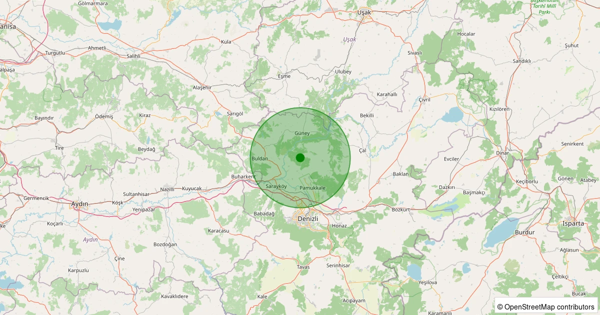 Son 7 gün içinde Pamukkale - Belenardıç Köyü noktasından 100 km yarıçap içerisinde meydana gelen diğer depremler: