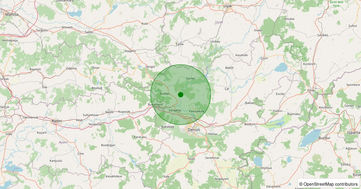 Son 7 gün içinde Buldan - Mahmutlu noktasından 100 km yarıçap içerisinde meydana gelen diğer depremler: