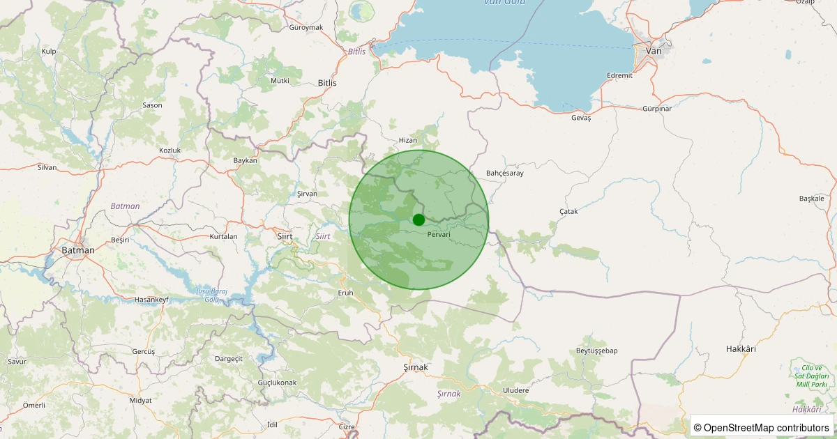Son 7 gün içinde Pervari - Dolusalkım Köyü noktasından 100 km yarıçap içerisinde meydana gelen diğer depremler: