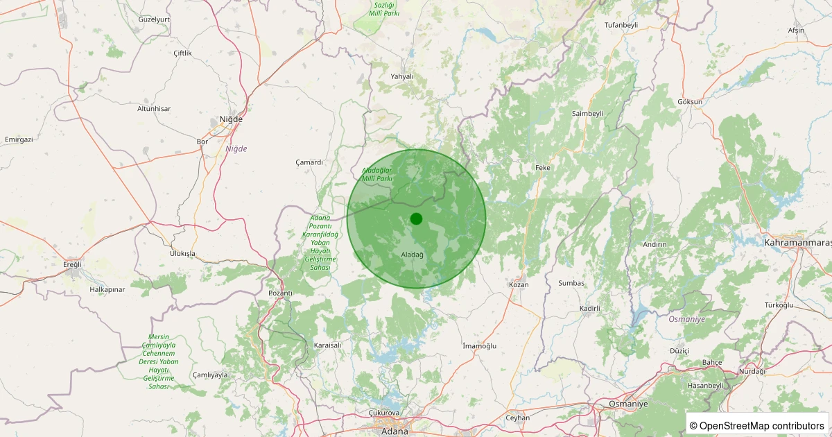 Son bir hafta içerisinde Adana şehri Aladağ - Darılık noktasından 100 km yarıçap içerisinde toplamda 91 deprem kaydedilmiştir. Bu depremlerden en büyüğü 2.6 büyüklüğünde ve en sığ odaklısı 3.70 kilometre derinlikte gerçekleşmiştir.