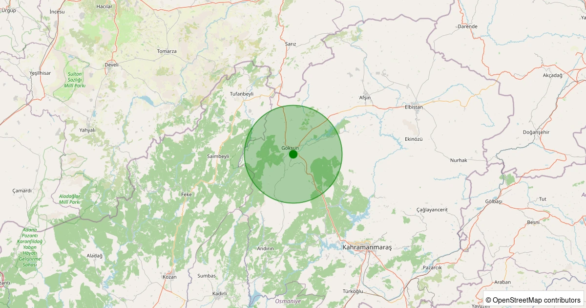 Son 7 gün içinde Göksun - Kireç noktasından 100 km yarıçap içerisinde meydana gelen diğer depremler:
