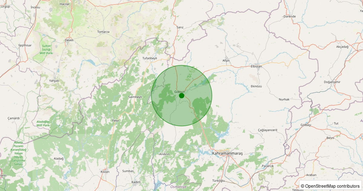 Son 7 gün içinde Göksun - Kireç noktasından 100 km yarıçap içerisinde meydana gelen diğer depremler: