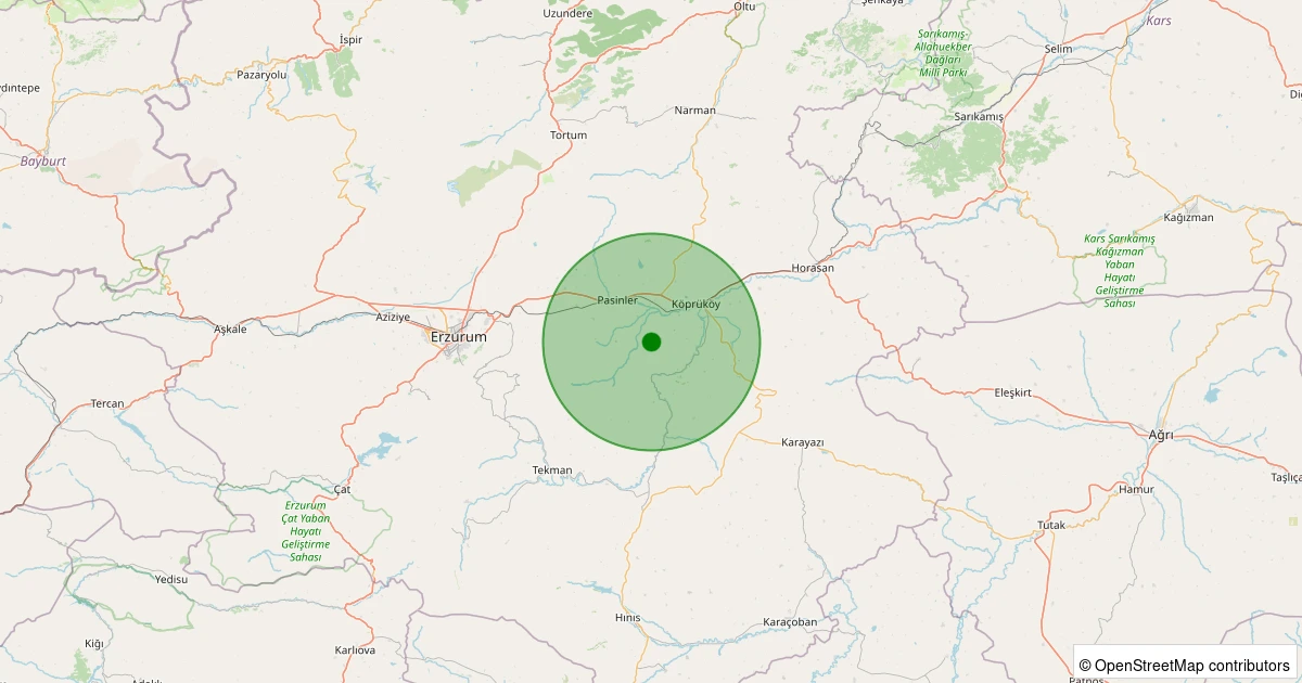 Son 7 gün içinde Pasinler - Uzunark noktasından 100 km yarıçap içerisinde meydana gelen diğer depremler: