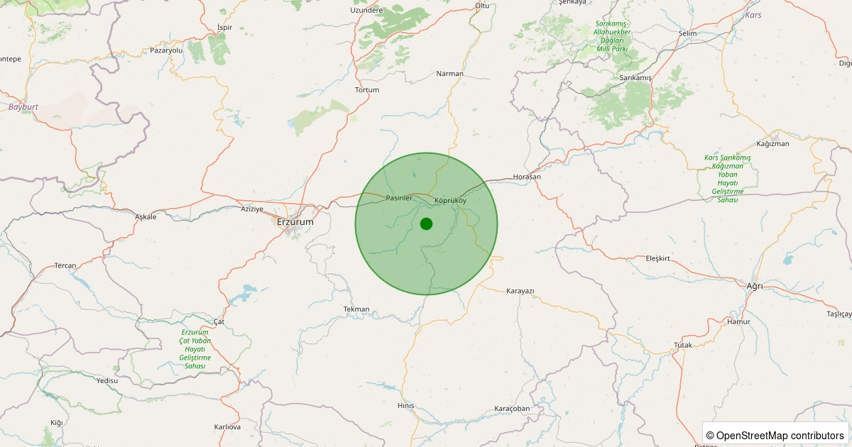 Son 7 gün içinde Pasinler - Uzunark noktasından 100 km yarıçap içerisinde meydana gelen diğer depremler: