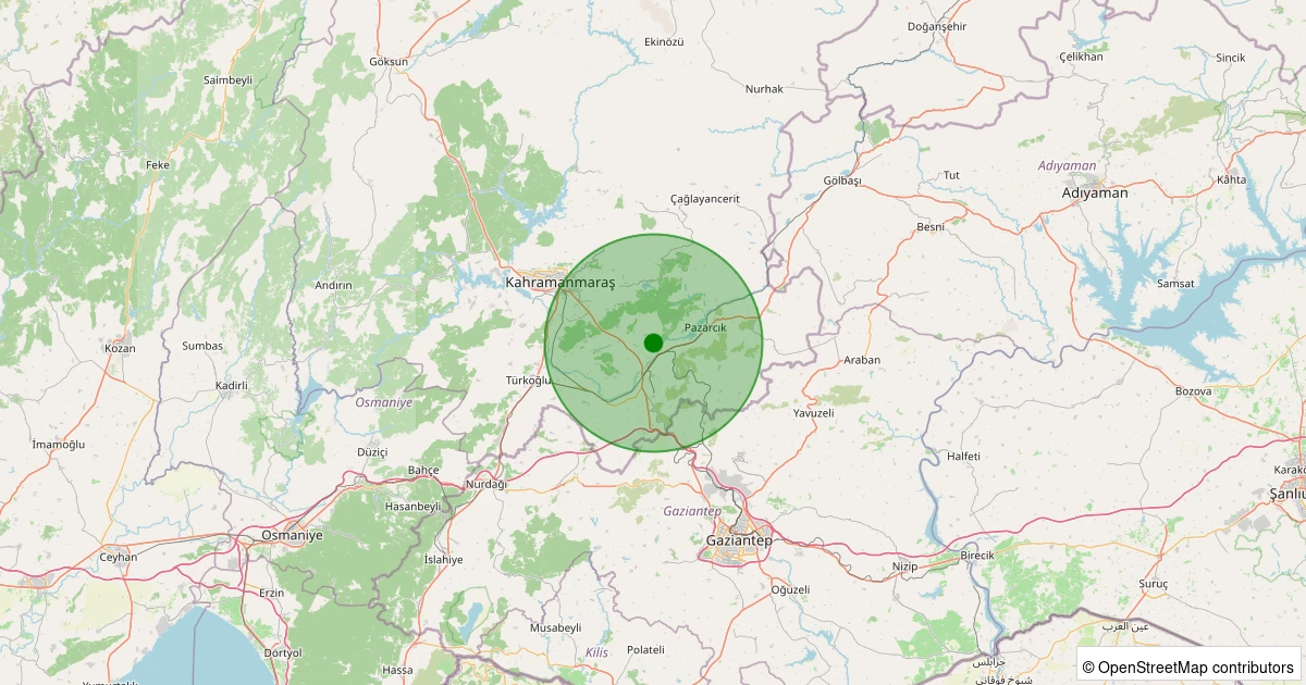 Son 7 gün içinde Dulkadiroğlu noktasından 100 km yarıçap içerisinde meydana gelen diğer depremler: