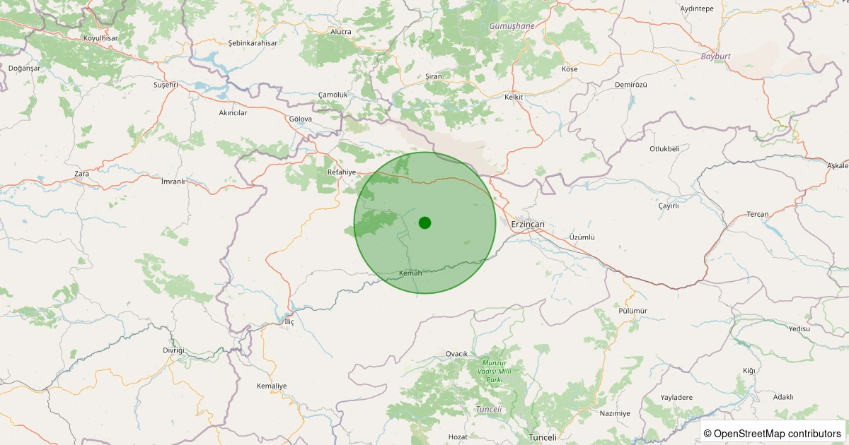 Son 7 gün içinde Kemah - Kerer Köyü noktasından 100 km yarıçap içerisinde meydana gelen diğer depremler: