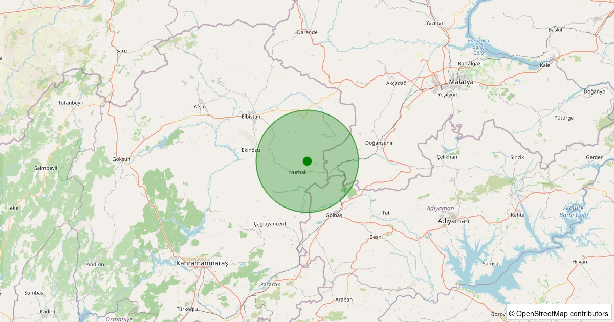 Son 7 gün içinde Nurhak - Karşıyaka noktasından 100 km yarıçap içerisinde meydana gelen diğer depremler: