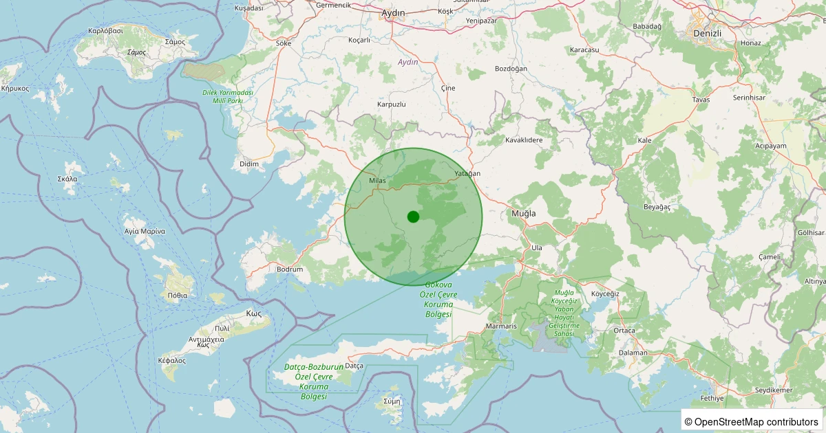 Son 7 gün içinde Milas - Kayaderesi noktasından 100 km yarıçap içerisinde meydana gelen diğer depremler: