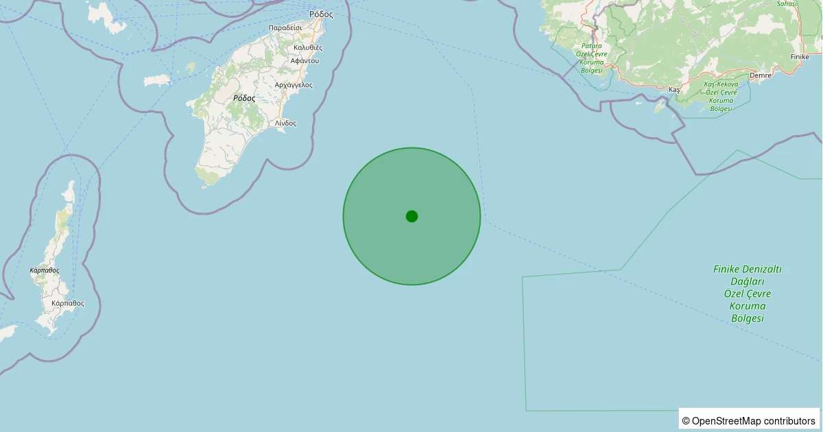 Son 7 gün içinde Akdeniz - [85.17 km] Kaş (Antalya) noktasından 100 km yarıçap içerisinde meydana gelen diğer depremler:
