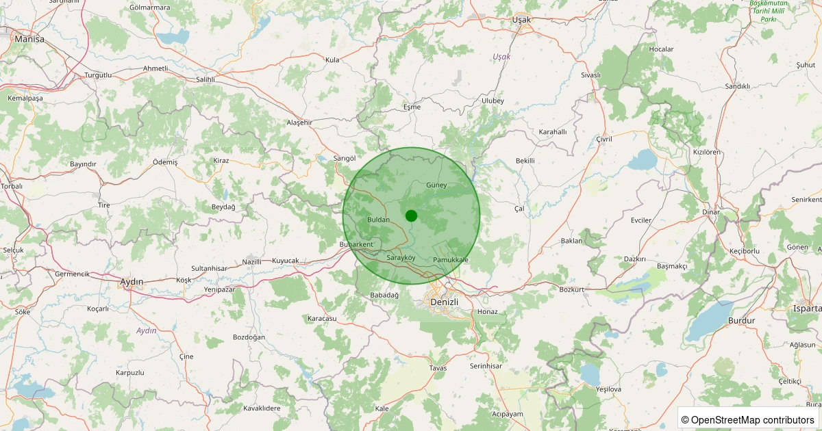 Son 7 gün içinde Buldan - Yenicekent noktasından 100 km yarıçap içerisinde meydana gelen diğer depremler: