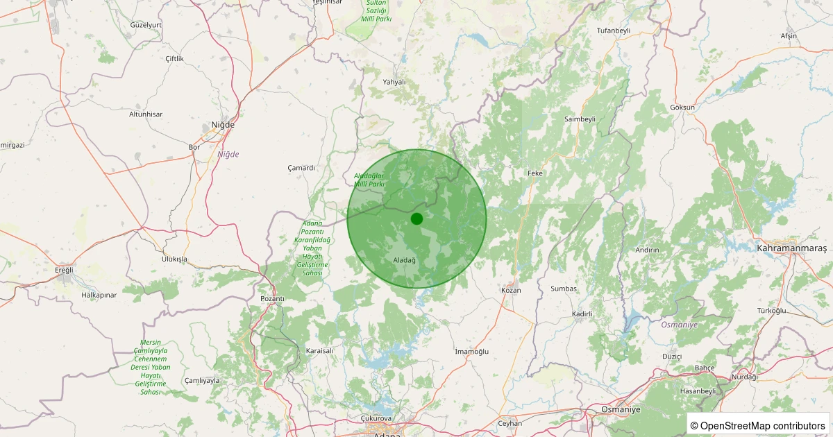 Son 7 gün içinde Aladağ - Küp noktasından 100 km yarıçap içerisinde meydana gelen diğer depremler: