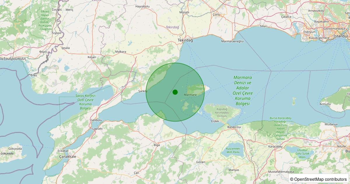 Son bir hafta içerisinde Marmara Denizi - [08.88 km] Marmara (Balıkesir) noktasından 100 km yarıçap içerisinde toplamda 36 deprem kaydedilmiştir. Bu depremlerden en büyüğü 2.4 büyüklüğünde ve en sığ odaklısı 3.60 kilometre derinlikte gerçekleşmiştir.