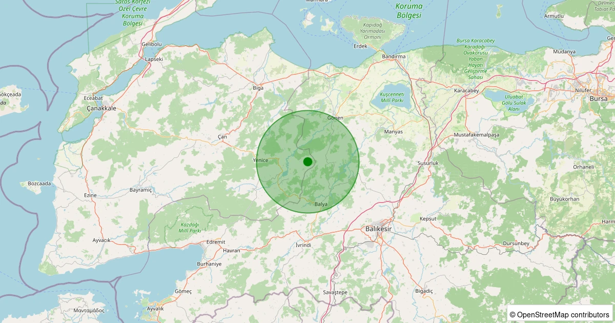 Son bir hafta içerisinde Çanakkale şehri Yenice - Yeşilköy Köyü noktasından 100 km yarıçap içerisinde toplamda 246 deprem kaydedilmiştir. Bu depremlerden en büyüğü 3.4 büyüklüğünde ve en sığ odaklısı 0.00 kilometre derinlikte gerçekleşmiştir.