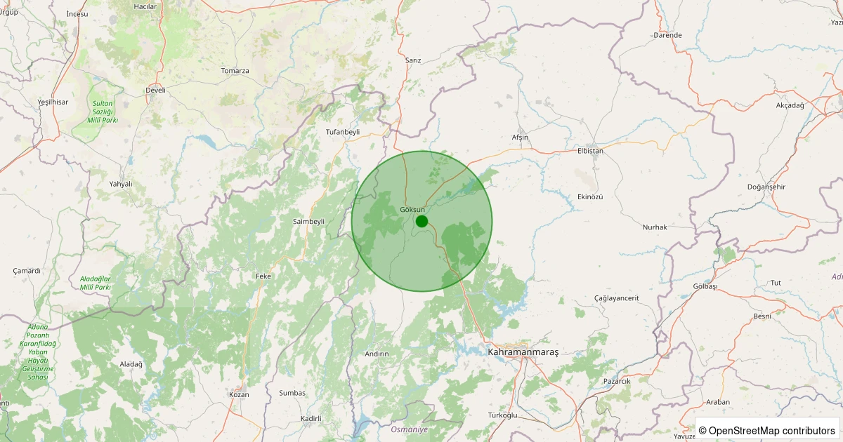 Son 7 gün içinde Göksun noktasından 100 km yarıçap içerisinde meydana gelen diğer depremler: