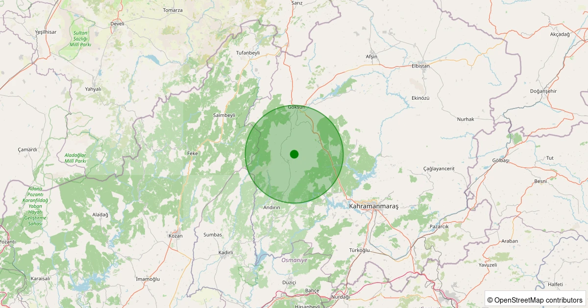 Son bir hafta içerisinde Kahramanmaraş şehri Andırın - Geben/Çamlıca noktasından 100 km yarıçap içerisinde toplamda 206 deprem kaydedilmiştir. Bu depremlerden en büyüğü 2.7 büyüklüğünde ve en sığ odaklısı 0.00 kilometre derinlikte gerçekleşmiştir.