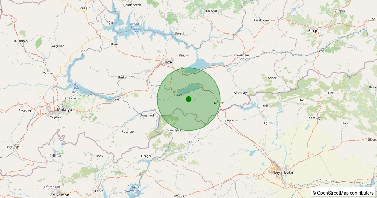 Son 7 gün içinde Sivrice - Elmasuyu Köyü noktasından 100 km yarıçap içerisinde meydana gelen diğer depremler: