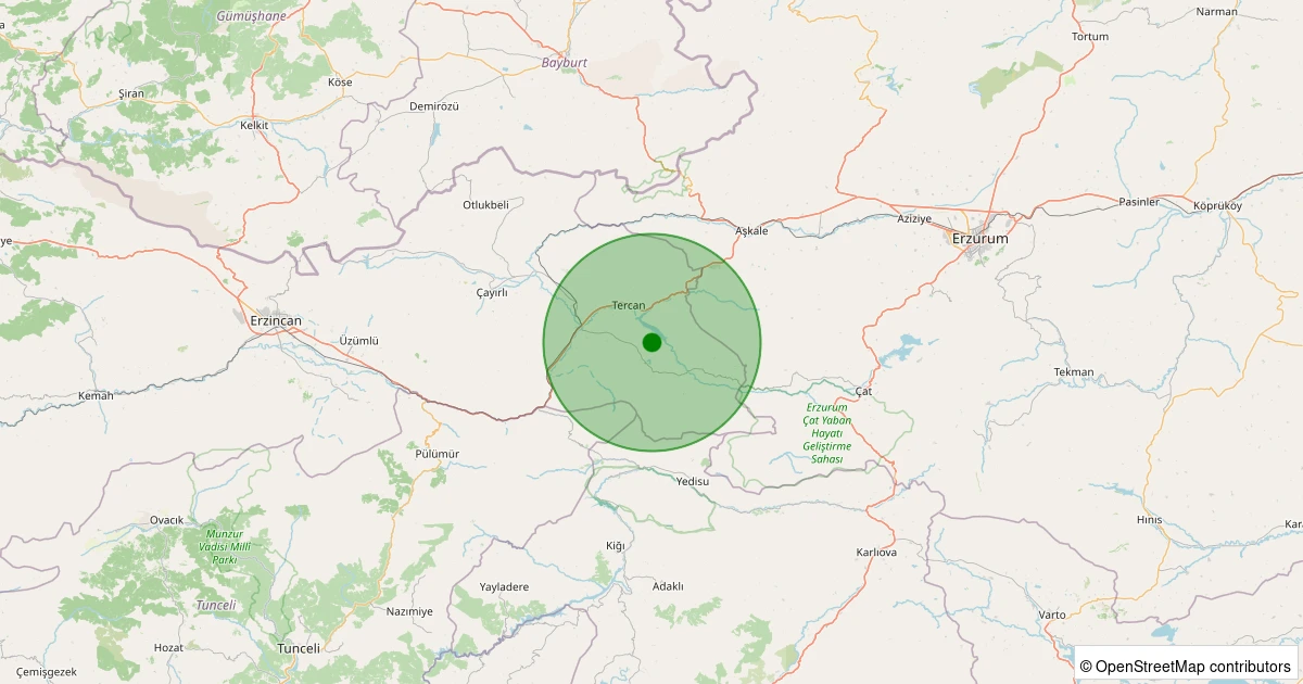 Son bir hafta içerisinde Erzincan şehri Tercan - Kuzuören Köyü noktasından 100 km yarıçap içerisinde toplamda 64 deprem kaydedilmiştir. Bu depremlerden en büyüğü 3.2 büyüklüğünde ve en sığ odaklısı 5.00 kilometre derinlikte gerçekleşmiştir.
