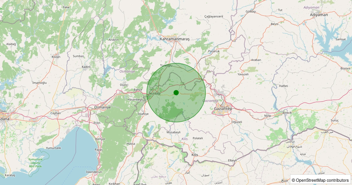 Son 7 gün içinde Nurdağı - Sakçagözü noktasından 100 km yarıçap içerisinde meydana gelen diğer depremler: