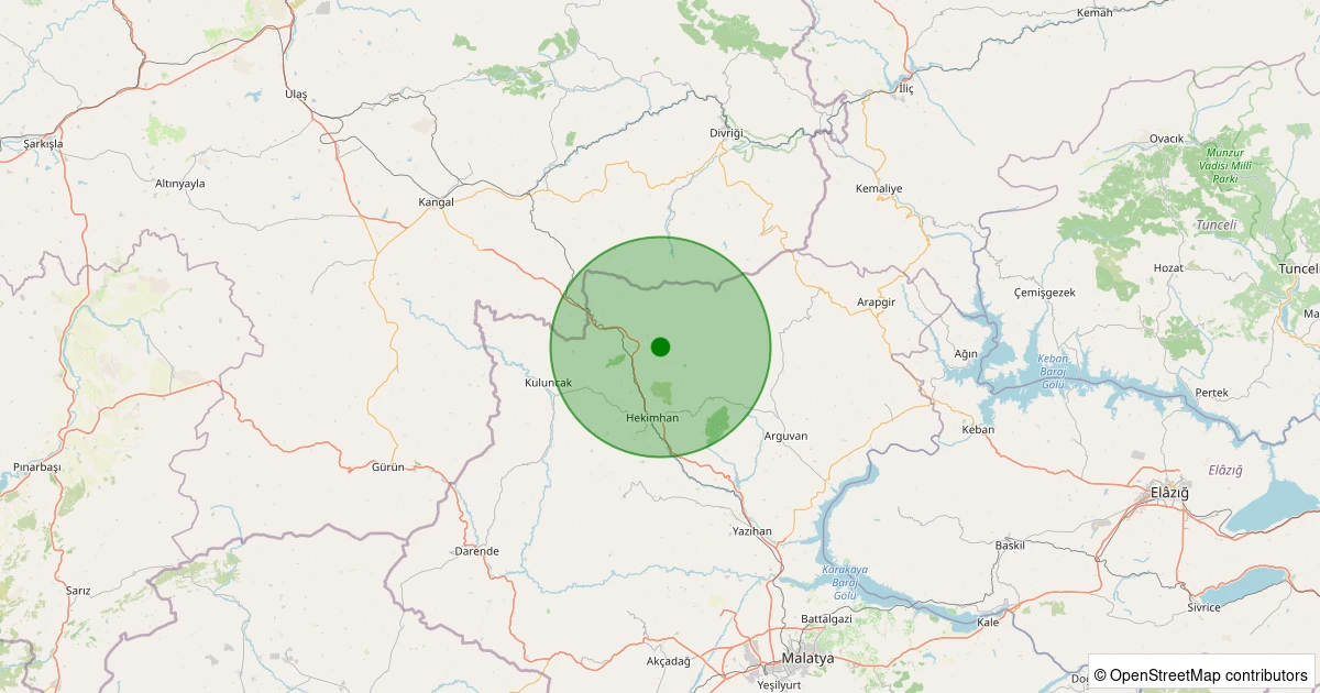 Son 7 gün içinde Hekimhan - Basak Köyü noktasından 100 km yarıçap içerisinde meydana gelen diğer depremler: