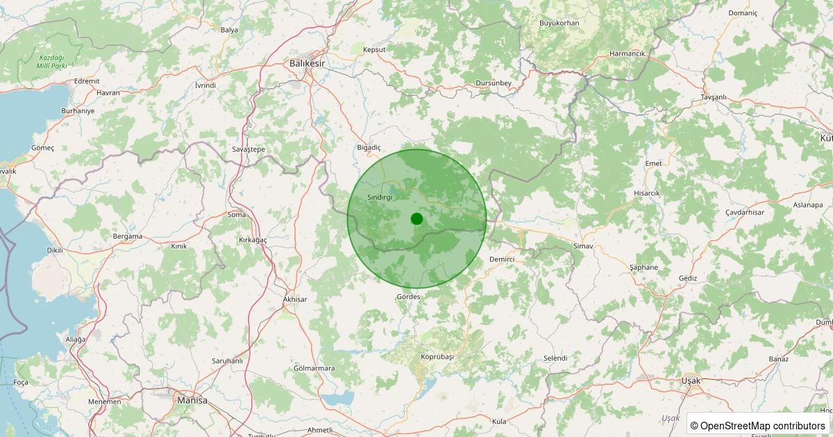 Son 7 gün içinde Sındırgı - Küçükdağdere noktasından 100 km yarıçap içerisinde meydana gelen diğer depremler: