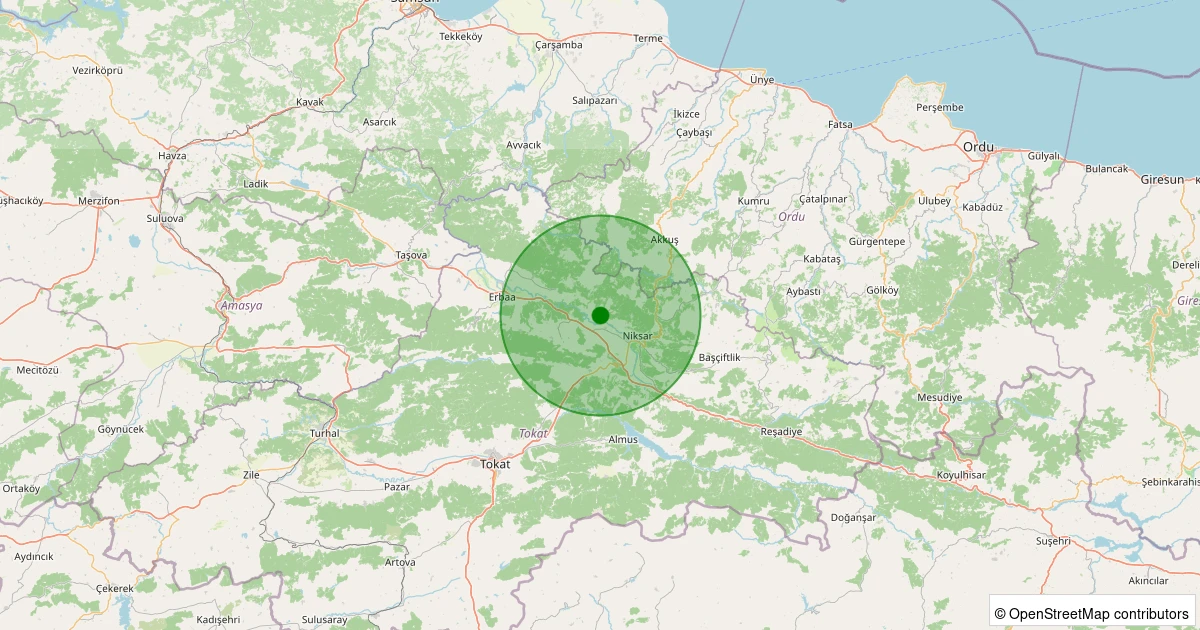 Son 7 gün içinde Niksar - Kümbetli Köyü noktasından 100 km yarıçap içerisinde meydana gelen diğer depremler: