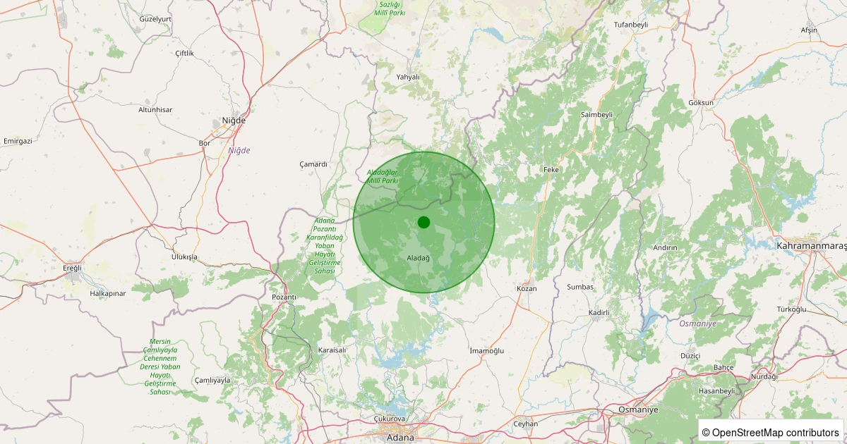 Son 7 gün içinde Aladağ - Küp noktasından 100 km yarıçap içerisinde meydana gelen diğer depremler:
