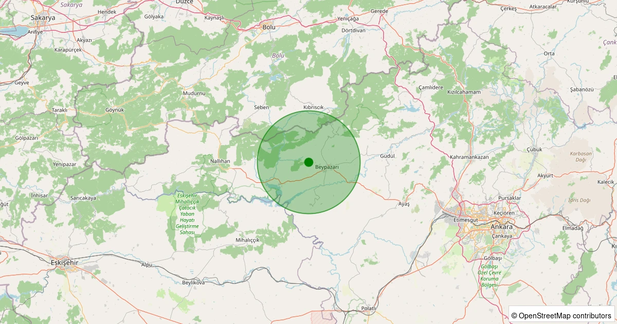 Son 7 gün içinde Beypazarı - Çakıloba noktasından 100 km yarıçap içerisinde meydana gelen diğer depremler: